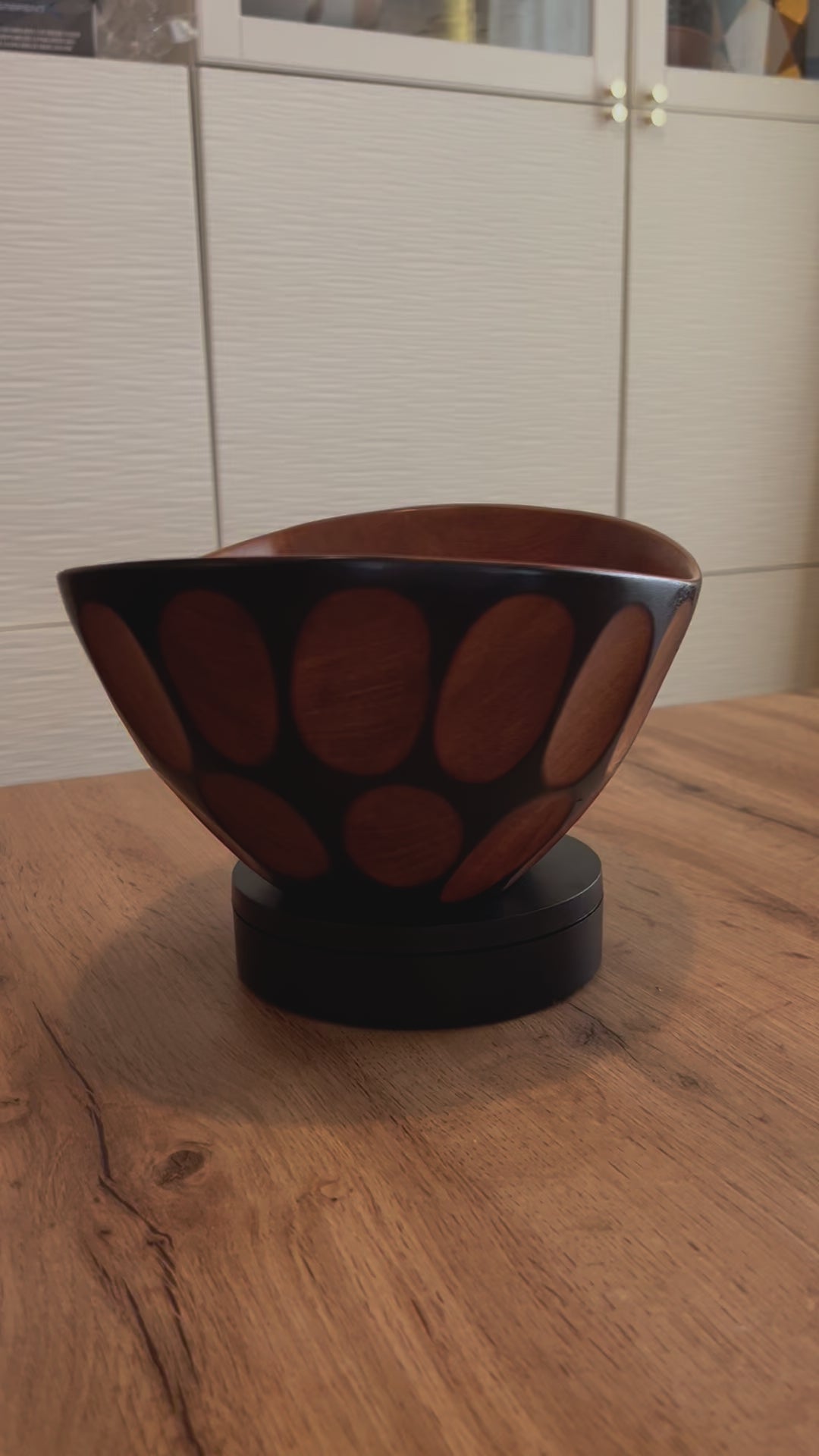 Chaque courbe de ce récipient en bois témoigne du soin méticuleux apporté par l'artisan. Les contours doux et fluides révèlent un grain boisé naturel, poli avec précision pour capturer la lumière et révéler toute la richesse des nuances du matériau. Les variations subtiles dans la texture et la couleur du bois ajoutent une profondeur visuelle, offrant une expérience sensorielle unique à chaque regard et à chaque toucher.